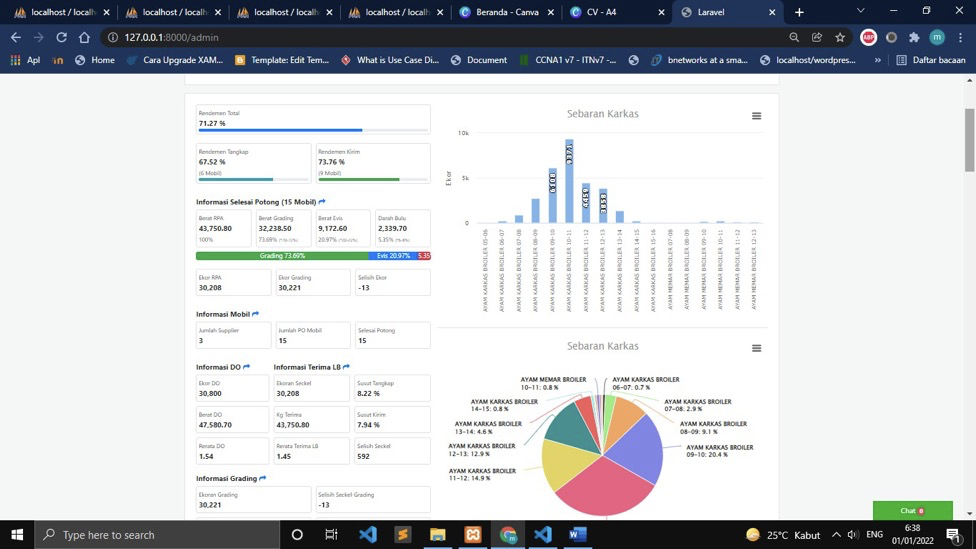 Melakukan development dan maintenance dashboard untuk mengelola kandang ayam menggunakan laravel
