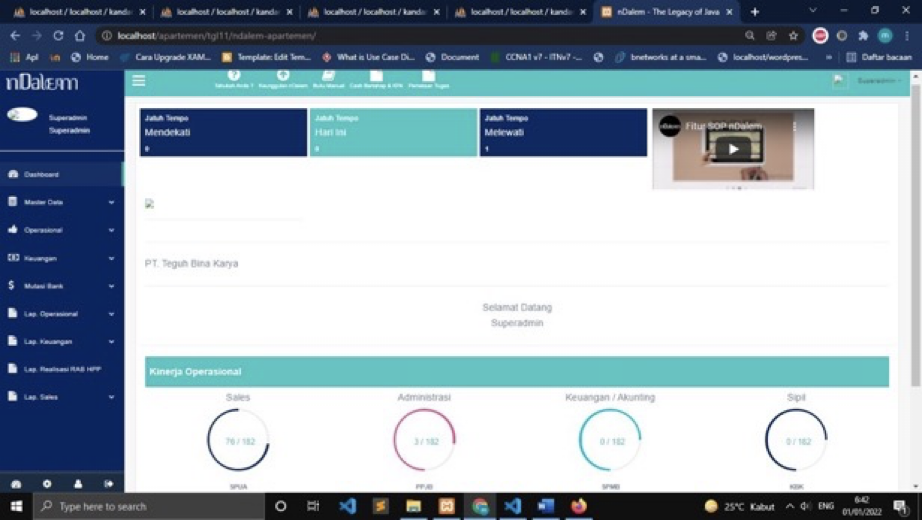 Membuat Dashboard untuk ERP untuk penjualan apartemen dan perumahan menggunakan Codeigniter